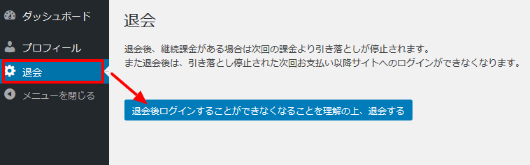 1.会員は、本サービスの退会ページでの手続きを行うことで、オンラインサロンを退会することができるものとします。